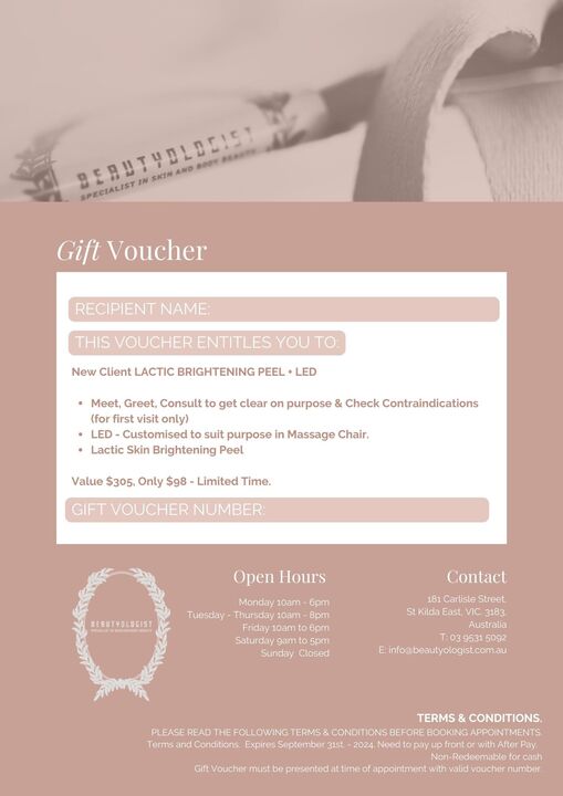 New Client $98 Lactic Hydration Peel + LED